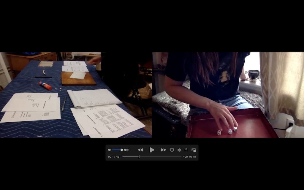 Player One has 60 minutes to create & bind a simple book structure, according to instructions sheet provided by Player Unknown. The instructions may be followed in any order that Player One deems necessary or effective.