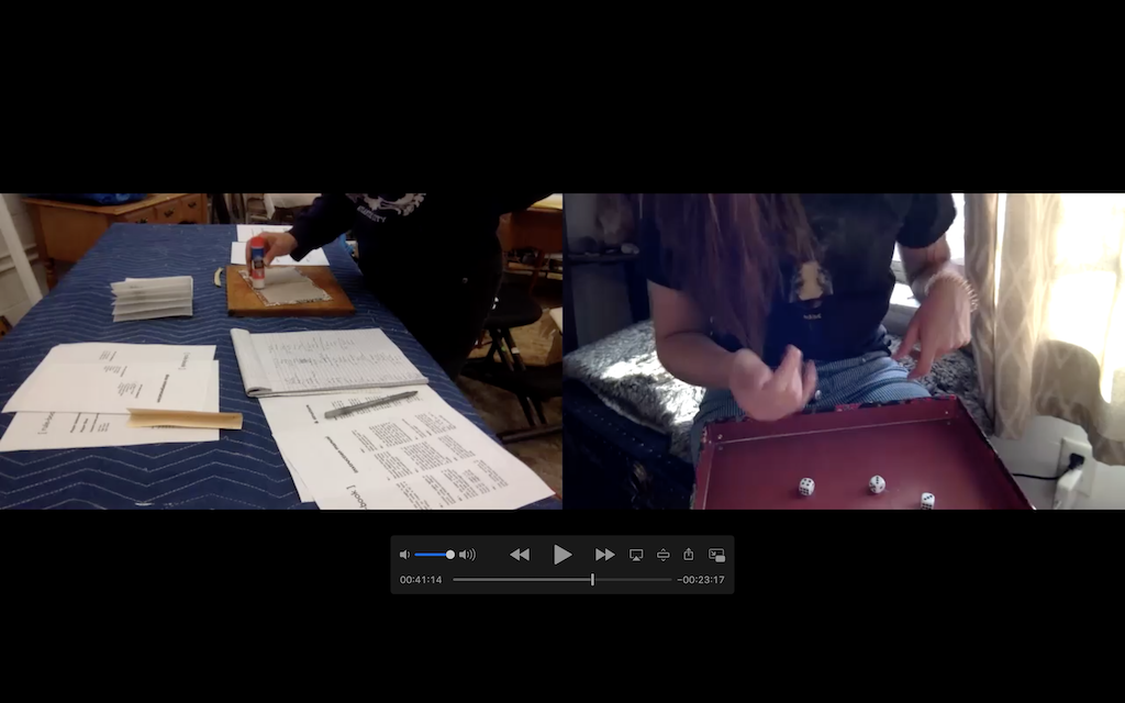 Player One locates a table with enough space to house the parts list for easy access as well as a working surface to build. Players connect remotely via video chat, so that Player Unknown can see Player One’s work surface table, tools, & hands, while Player One sees Player Unknown’s rolling of dice. Players review the sheets provided pre-game for any clarification necessary.